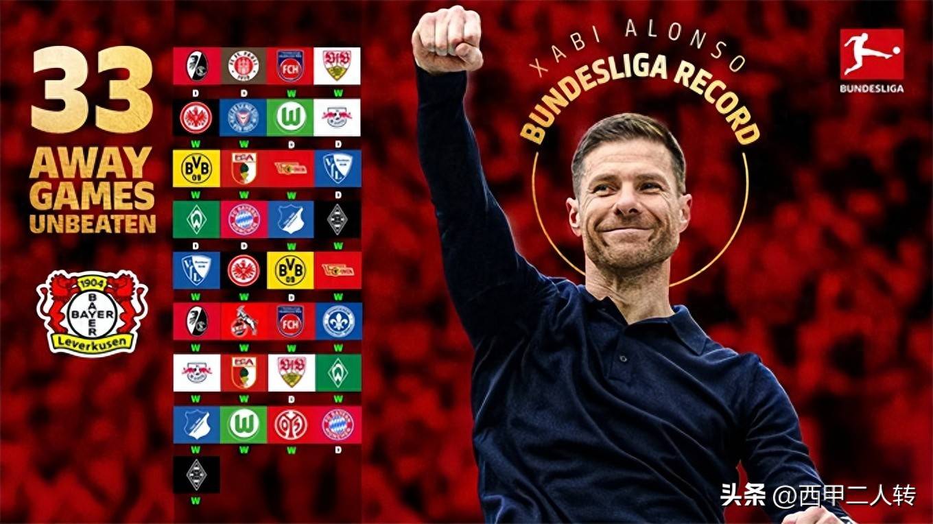 现阶段,勒沃库森的客场不败纪录已稳稳攀升至33场,成为德甲的一段传奇。