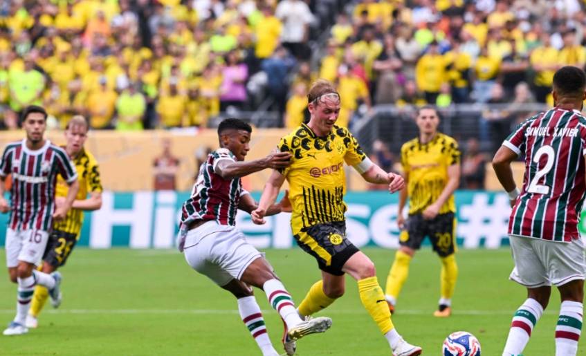 比赛的开局却出人意料,弗鲁米嫩塞反而更早掌握主动权。第18分钟,他们抓住机会发动反击,J-阿里亚斯一路突破后在禁区内劲射,却被多特蒙德门将科贝尔神勇扑出。紧接着,第23分钟,多特蒙德创造了他们全场最具威胁的进攻机会,阿德耶米从左侧送出低平球,吉拉西本该铲射空门,结果却意外失手,痛失良机。然而,整体来看,多特蒙德表现得拖沓无力,整体节奏缓慢,甚至在奔跑和拼劲上都显得不如巴西球队。上半场结束,双方以0-0的平局收场。